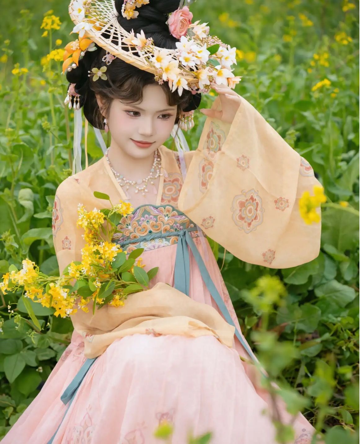 【主题】【春日燕】涂七七 杏色上衣不规则绿下裙