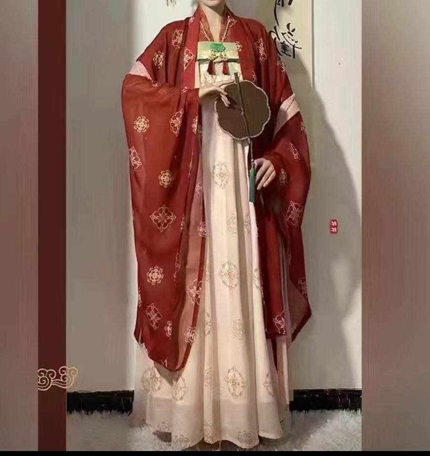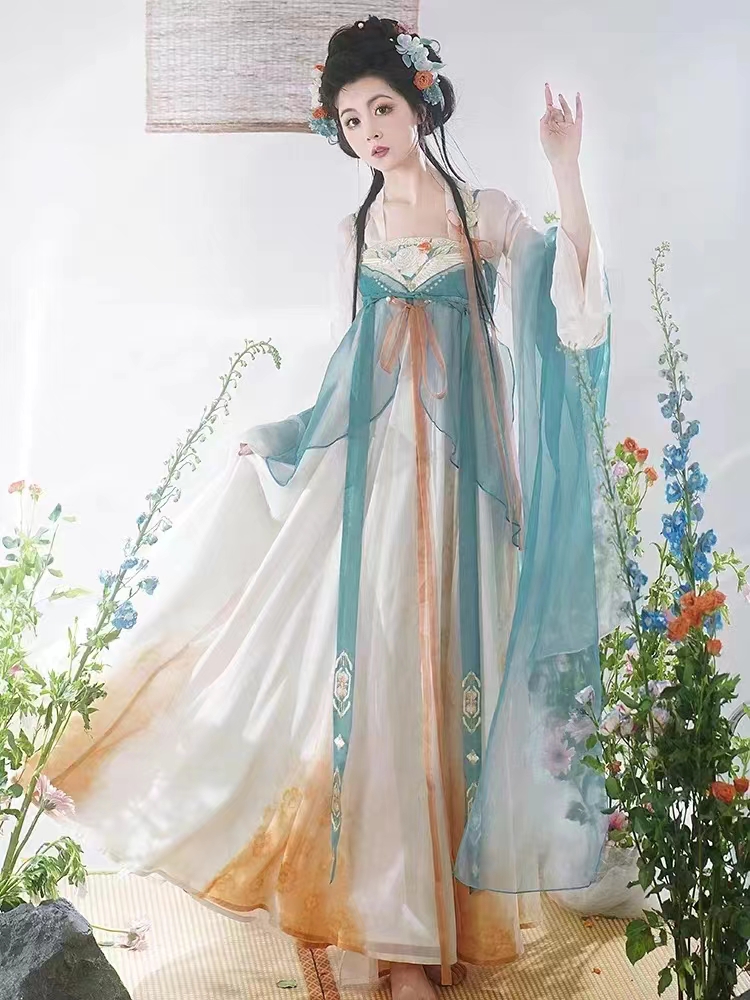 花白集原创汉服女[梦回大唐]唐制复原款齐胸大袖衫刺绣春夏款套装