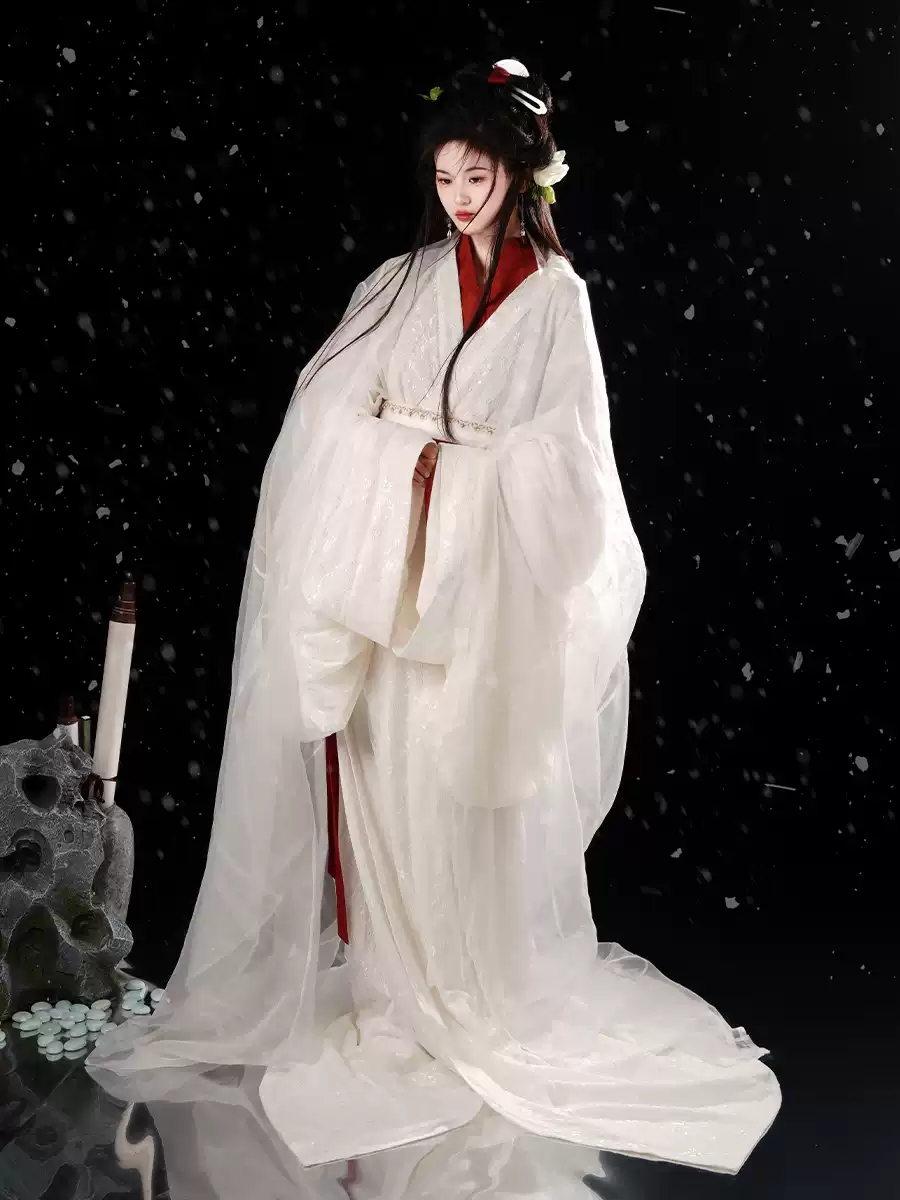 【拖尾款】战国袍山迟【文姬】汉服复原红白色蕾丝双层春秋冬日常仙气上镜