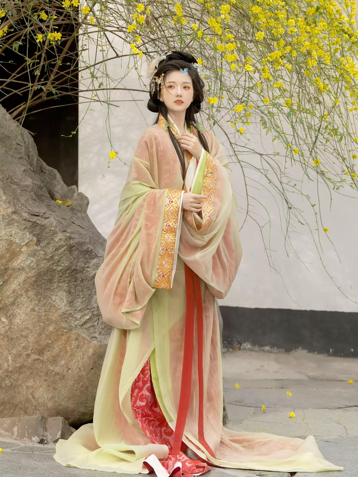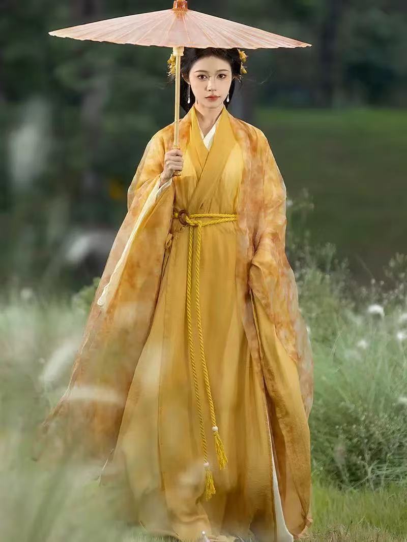 [青鸟集] 秋风引| 非复原魏晋风改良直裾汉元素大袖衫黄色直裾
