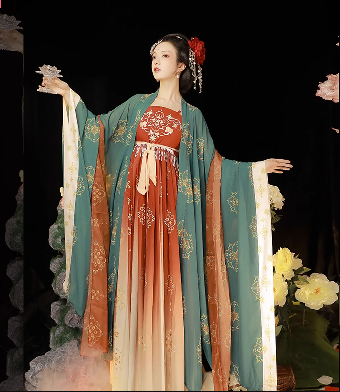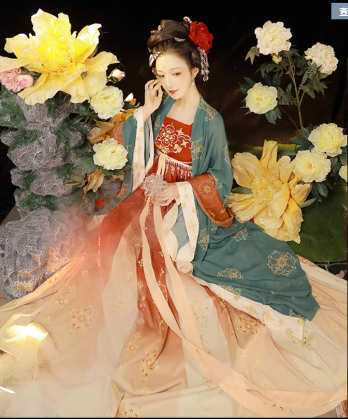 远山娥黛原创汉服唐制复原图女夏季刺绣诃子裙