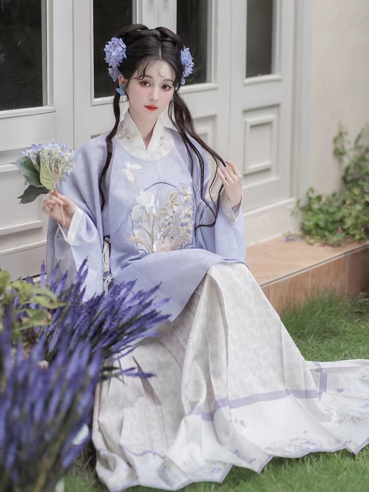 梨花阁亭原创汉服女莳芳景明制立领对襟长衫刺绣马面裙日常秋冬季