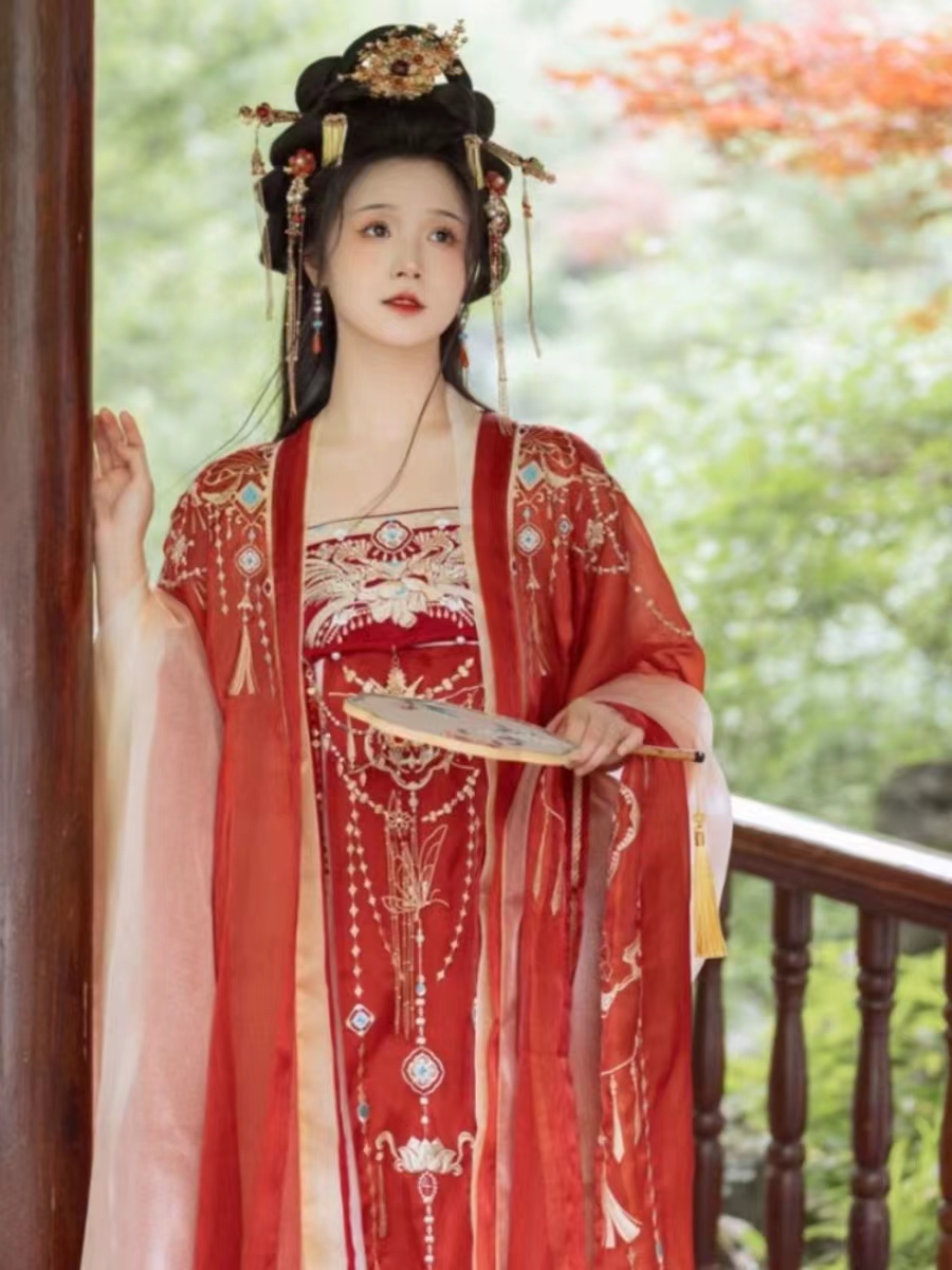 十九觅【月笼沙】重工绣花双层大袖齐胸裙唐制汉服秋现货