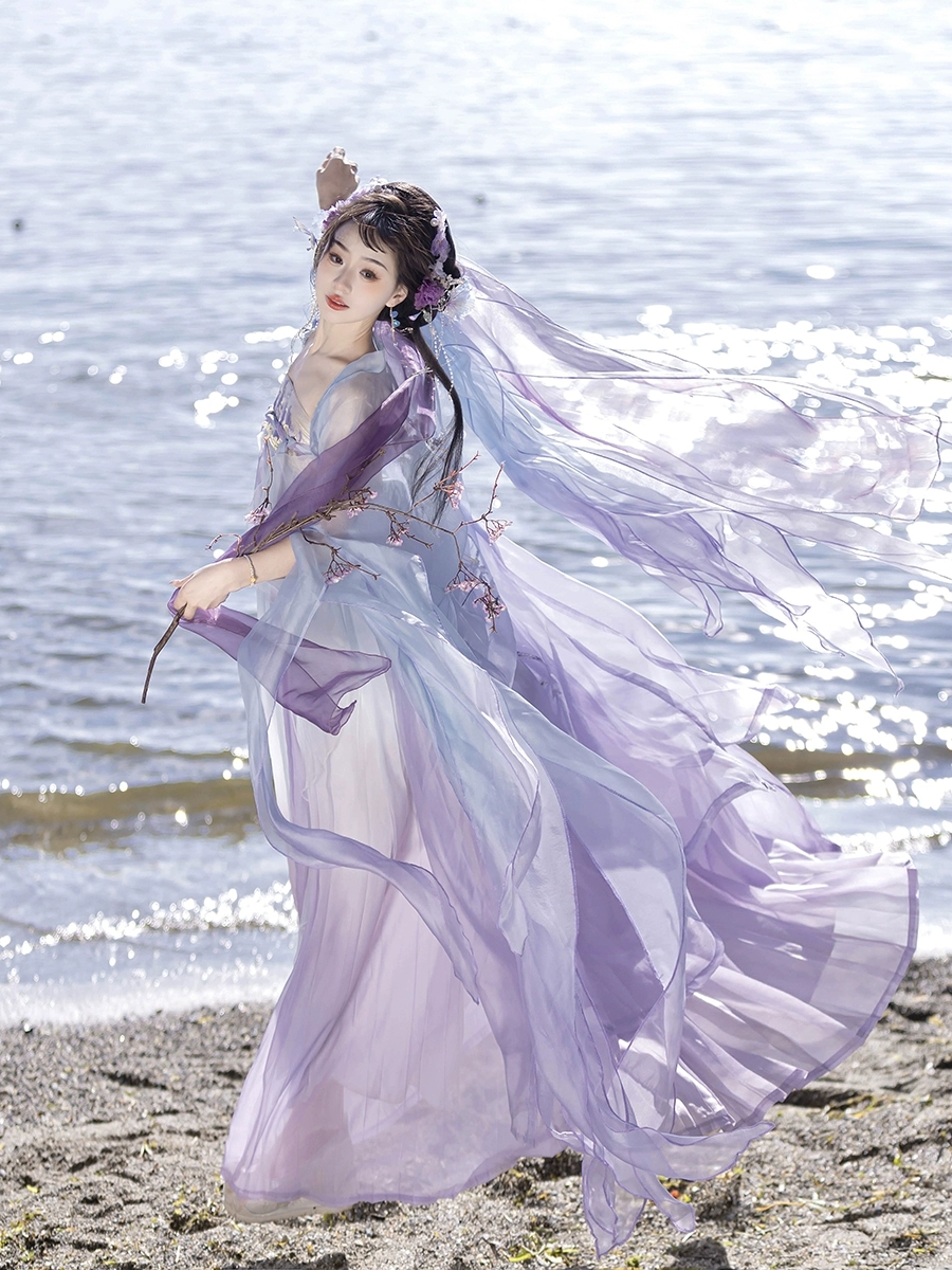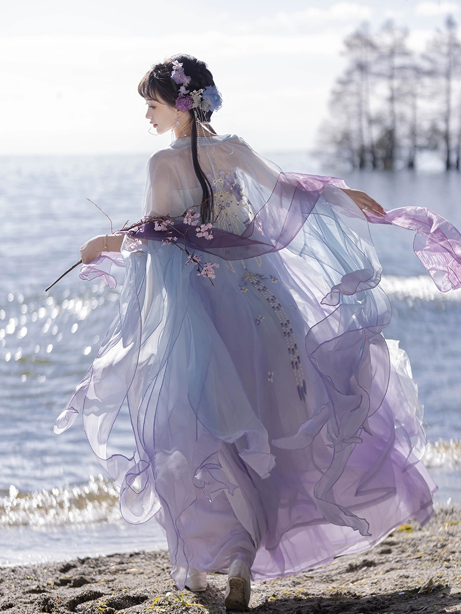 灵溪阁原创汉服【水中月】唐制诃子裙双层大袖衫刺绣春夏款汉元素