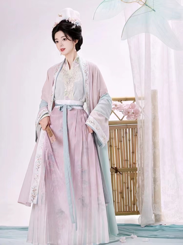 池夏L码【谷雨:花溪】宋制飞机袖长衫吊带百迭裙原创改良汉服女春夏