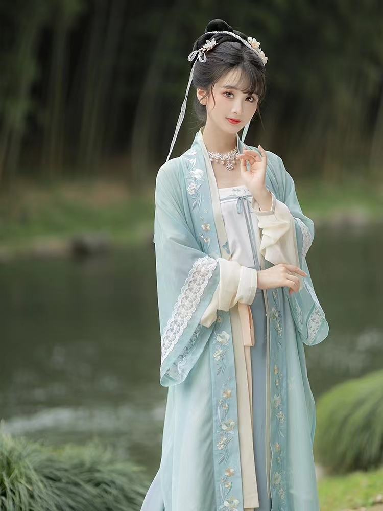 池夏 夏:幽若 宋制长干寺长衫四破三襇裙吊带原创改良汉服女春夏