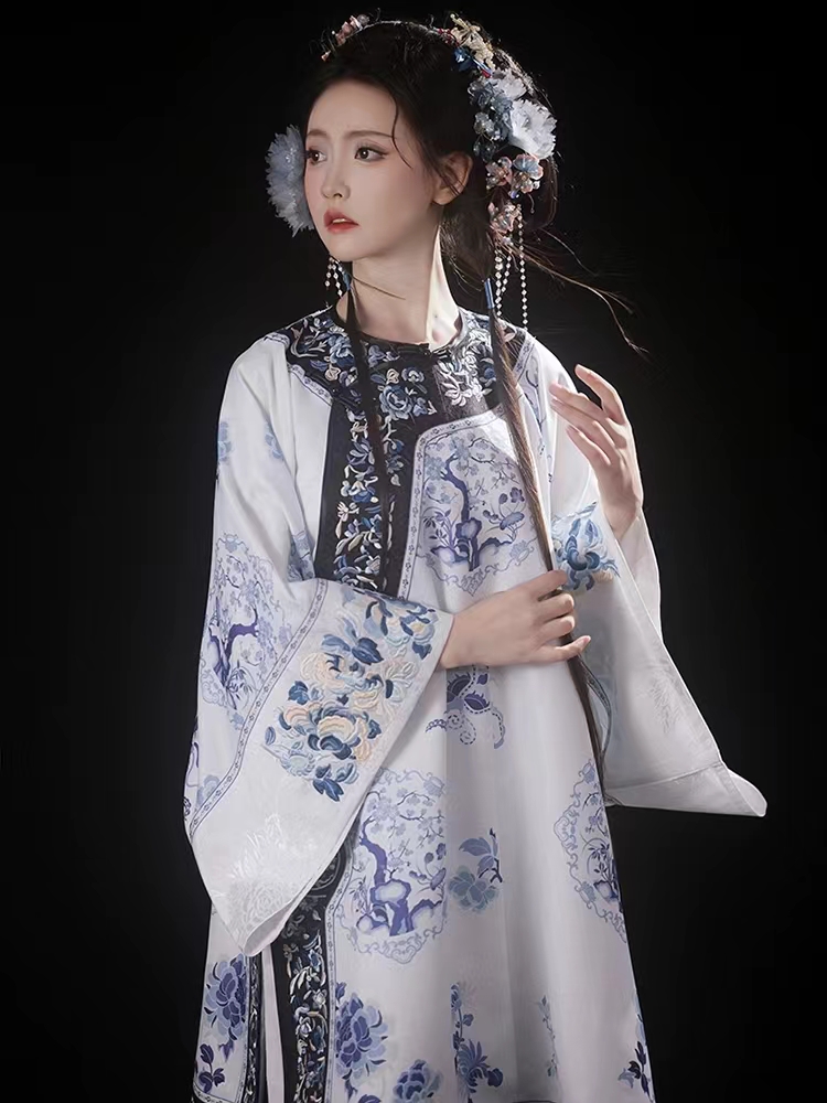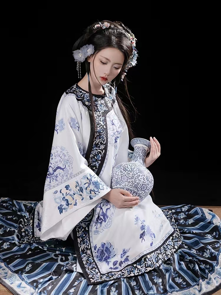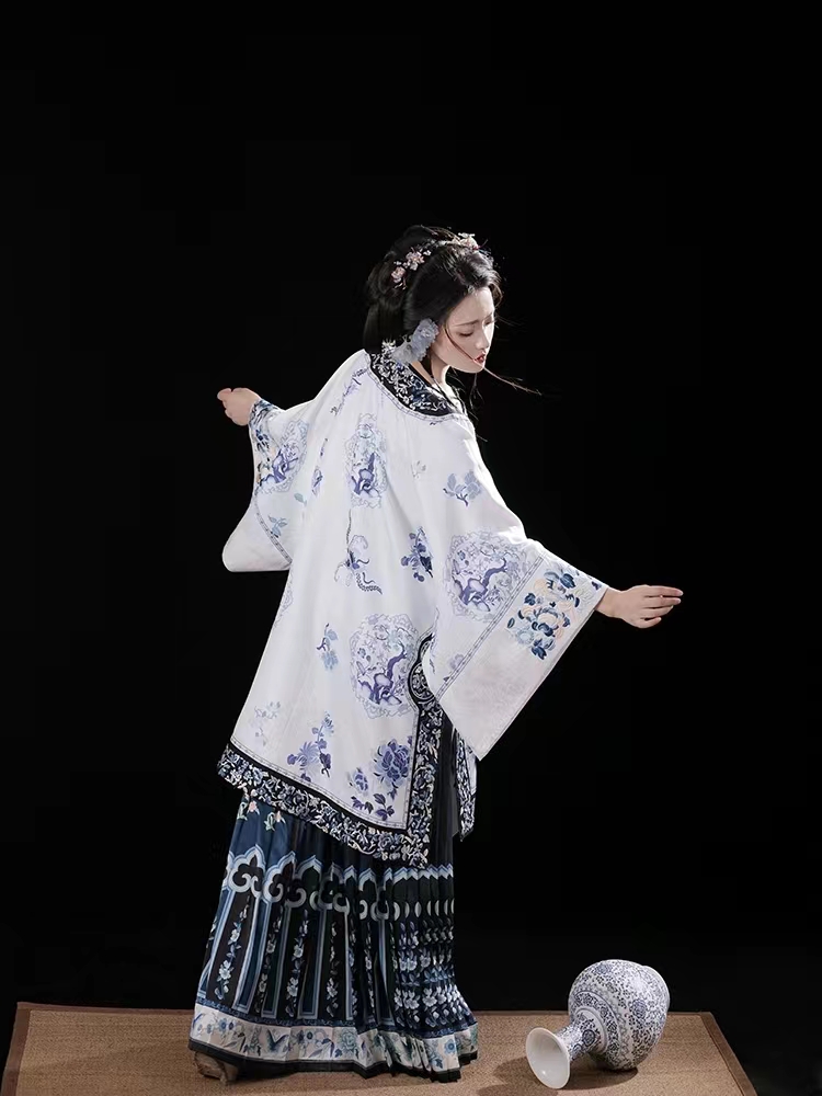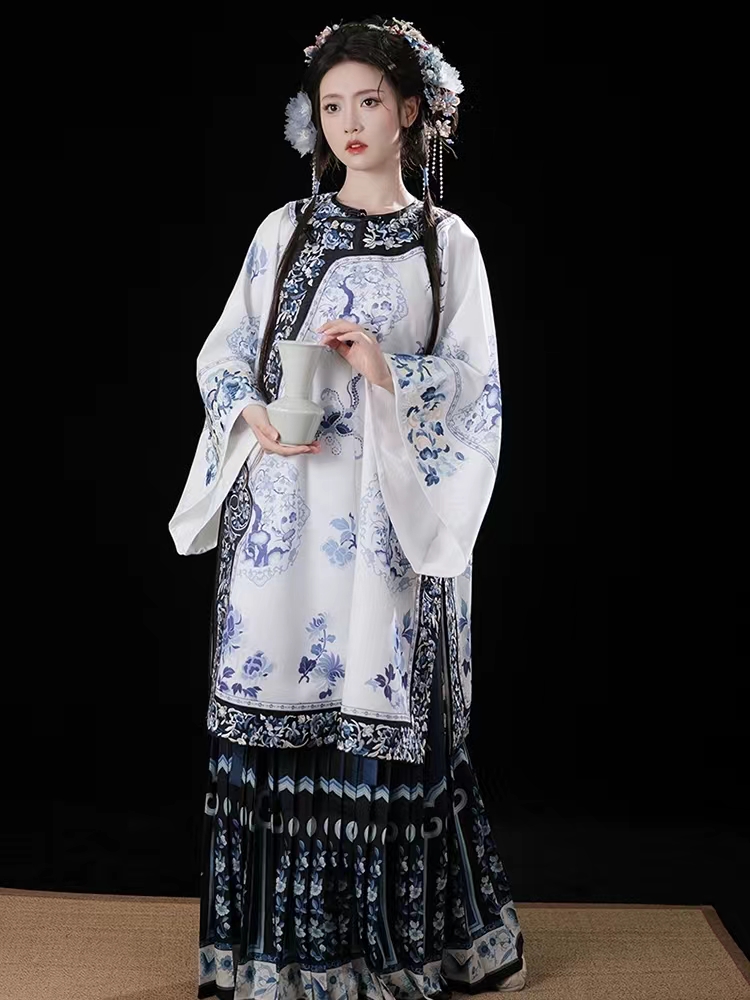 摸鱼儿【青花瓷】复古重工刺绣晚清汉女裙氅衣印花百褶裙不是汉服